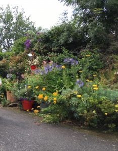 “Le Relais de Kerpenhir” : la luxuriante floraison dont la variété nous a surpris et ravis : acanthes, anémones, agapanthes, lauriers-roses, lavande, impatiens, pétunias, fuchsias, hortensias … une profusion de fleurs, de plantes et de buissons, à couper le souffle ! couronne l’hôtel-restaurant : certaines exotiques comme le datura appelé aussi “l’herbe du diable”