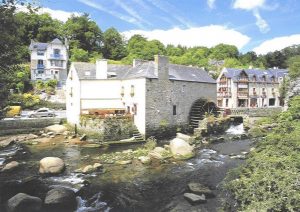Pont-Aven (Aven = rivière), la ville aux 14 moulins, fut un bourg actif avec ses foires aux bestiaux et ses marchés divers; sur le port, des caboteurs déchargeaient des céréales et remplissaient les cales de bois de chauffage. On y troquait, entre autres, le granit contre du charbon, et on y pratiquait l’activité meunière. Et pourtant :